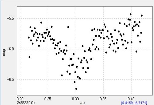 1月24日の夜、KaiV16を約5時間観測しました。 1月12日の発見 http://muttenz.hatenablog.com/entry/2014/01/15/054140 以来、合計4回観測できて、その内3回に極小か増光が捉えられました。 1月12日 1月17日 1月22日 1月24日 かなり暗い…