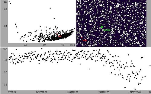 この所、KaiV57を観測していて、KaiV68、69と二つ新変光星を見つけましたが、その解析作業中にもう一つ見つけました。KaiV70 これは昨年のV337 Cygの観測フレームから見つけました。 今年の観測フレームでも変光が受かっていました。 EAっぽいですが、もっと…