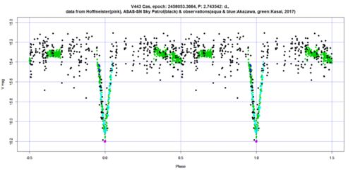 muttenz.hatenablog.com これの続きで、昨晩周期を2.74..日とした場合のフェーズ0.5付近を観測できました。期待通り、減光が受かりましたので、それが第二極小と思われ、周期も2.74...日に確定でしょう。 倉敷の赤澤さんにお願いして、先日極小を観測してい…